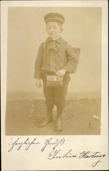 Foto Ak Kinderportrait, Junge in Uniform