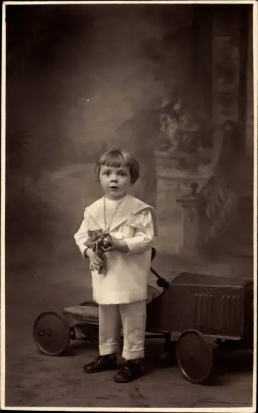 Foto Ak Kleines Kind mit Tretauto
