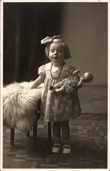 Foto Ak Kleines Mädchen mit Puppe, Portrait