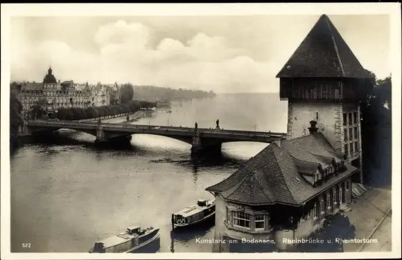 Foto Ak Konstanz am Bodensee, Rheinbrücke und Rheintorturm