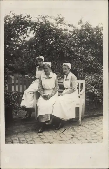 Foto Ak Krankenschwestern in Uniformen, Garten