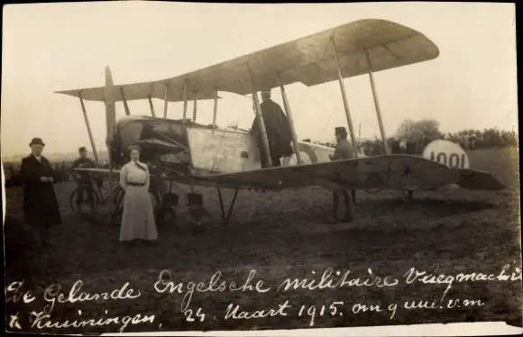 Foto Ak Kruiningen Zeeland, Gelande Engelsche militaire Vliegmachine, 1915