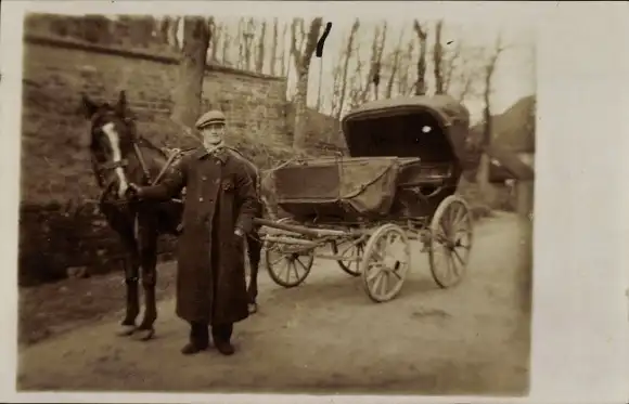 Foto Ak Kutsche, Mann mit Pferd, Porträt
