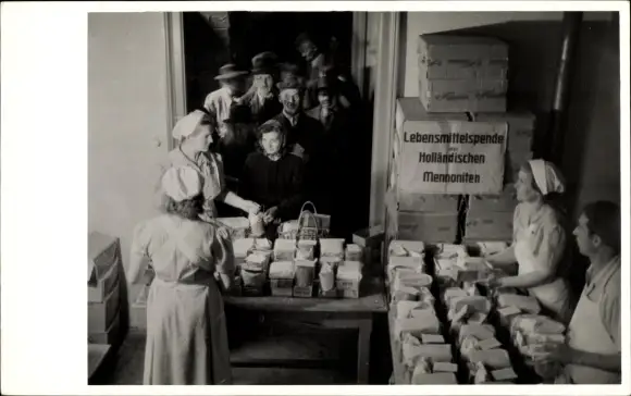 Foto Ak Lebensmittelspende der Holländischen Mennoniten