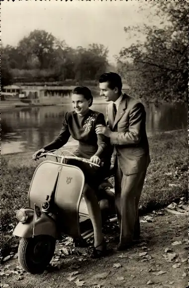 Foto Ak Liebespaar, Frau fährt Motorrad