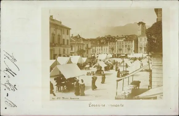 Foto Ak Locarno Kanton Tessin Schweiz, mercato, Markt