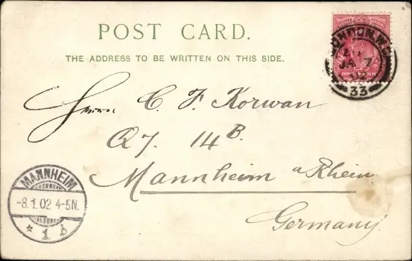Zustand, siehe Scan, gelaufen, 1902 - ca 9 cm X 14 cm