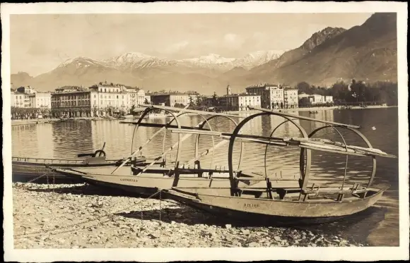 Foto Ak Lugano Kanton Tessin Schweiz, Ortsansicht, Boote am Ufer