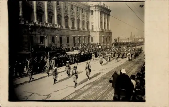 Foto Ak Madrid Spanien, Marschierende Soldaten in Uniformen, Parade
