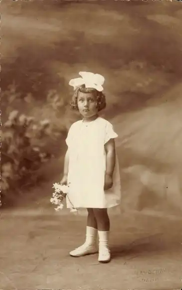 Foto Ak Mädchen in weißem Kleid, Portrait, Blumen