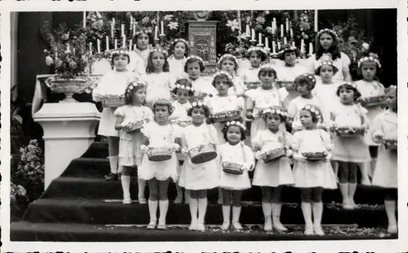 Foto Ak Mädchen in weißen Kleidern in einer Kirche ?, 1938