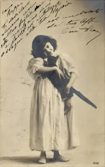 Foto Ak Mädchen kuschelt mit einem Tier, Porträt