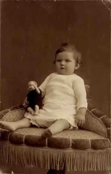 Foto Ak Mädchen mit Puppe, Porträt
