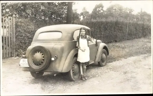 Foto Ak Mädchen vor einem Auto, Kennzeichen WL 13659-