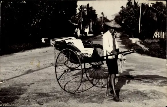 Foto Ak Malaysia, Straßenpartie, Rikscha