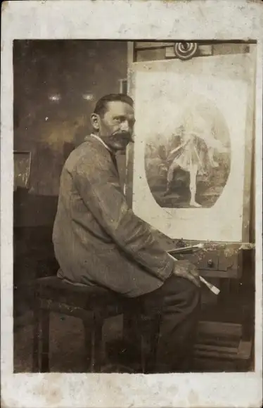 Foto Ak Maler malt ein Porträt, Gemälde, Pinsel