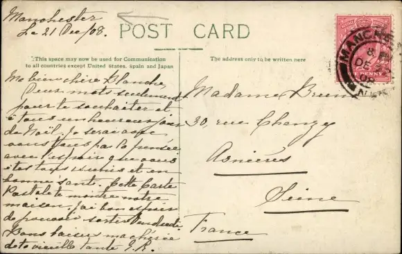 Zustand, siehe Scan, gelaufen, 1908 - ca 14 cm X 9 cm
