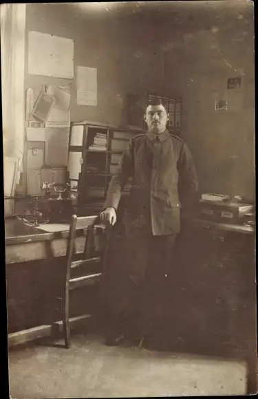 Foto Ak Mann in Uniform, Telefon, Schreibtisch, Büro