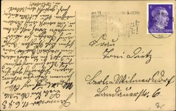 Zustand, siehe Scan, gelaufen, 1943 - ca 14 cm X 9 cm