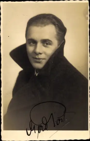Foto Ak Mann in schwarzem Mantel, Autogramm