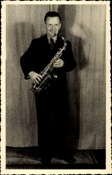 Ansichtskarte, Postkarte, Blasinstrument, Blasinstrumente, Musikinstrument, Musikinstrumente, Saxophon