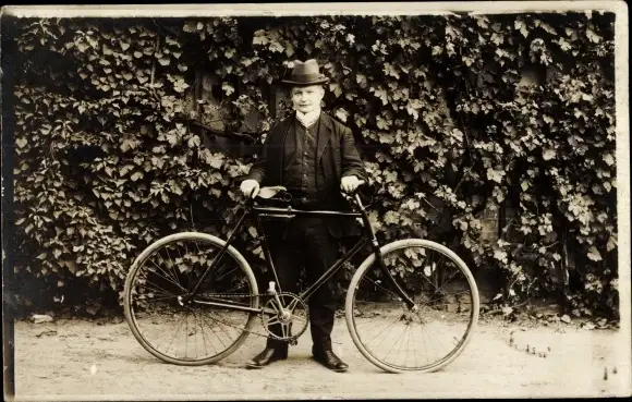 Foto Ak Mann mit einem Fahrrad, Portrait
