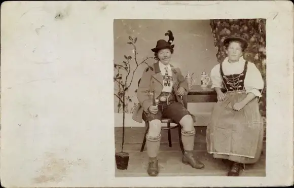 Foto Ak Mann und Frau in bayrischen Trachten, Lederhose, Dirndl