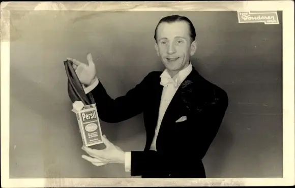 Foto Ak Mann wirbt für ein Persil-Produkt, Werbung