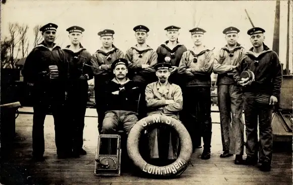Foto Ak Marinesoldaten in Uniformen, S.M.S. Lothringen, Kaiserzeit
