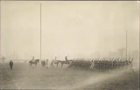 Foto Ak Marschierende deutsche Soldaten, Heerführer zu Pferde, Kaiserzeit