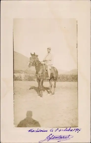 Foto Ak Mazedonien, Französischer Soldat zu Pferde, 1917