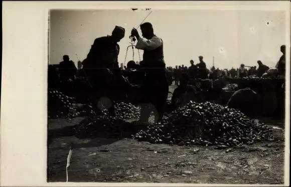 Foto Ak Mazedonien, Marktszene, Händler mit Waage
