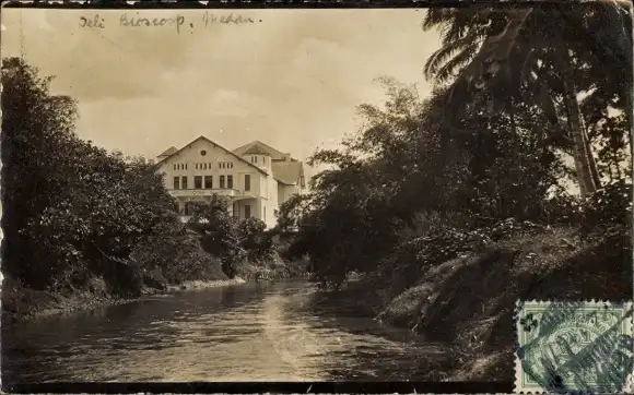 Foto Ak Medan Sumatra Indonesien, Wohnhaus, Fluss