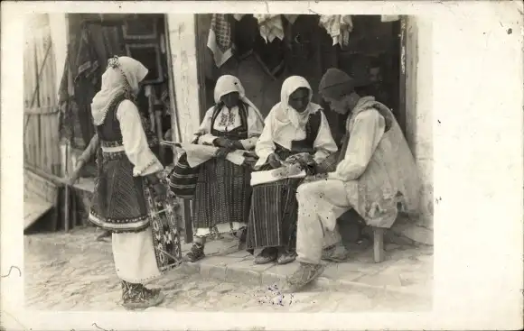 Foto Ak Menschen in serbischer Tracht, Frauen, Kopftuch, I. WK