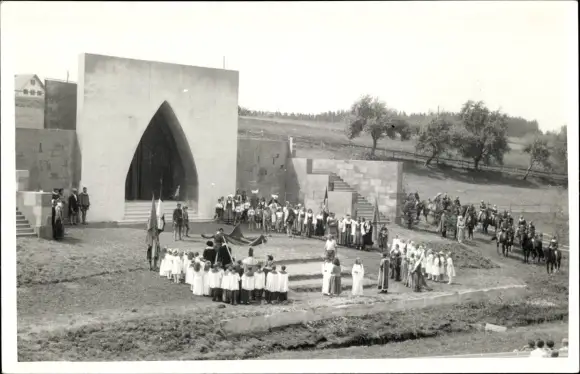 Foto Ak Menschen vor Kirche, Prozession, Gebet