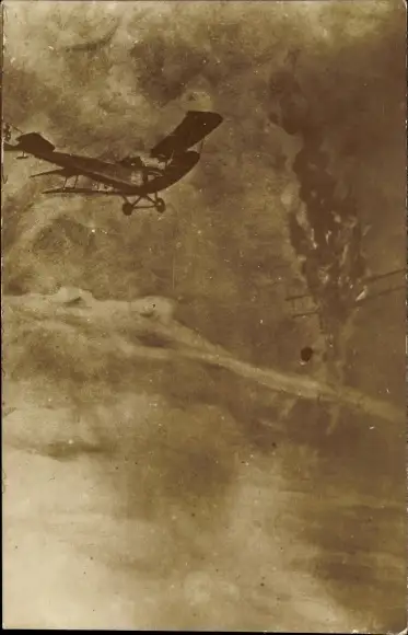 Foto Ak Militärflugzeug, brennend abstürzender Flieger