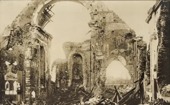 Foto Ak Miramont? Somme, Zerstörte Kirche, I. WK