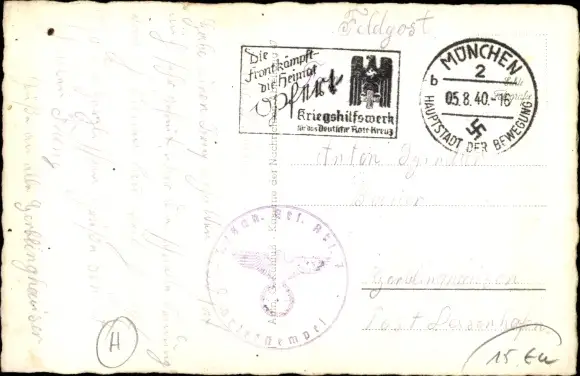 Zustand, siehe Scan, gelaufen, 1940 - ca 14 cm X 9 cm