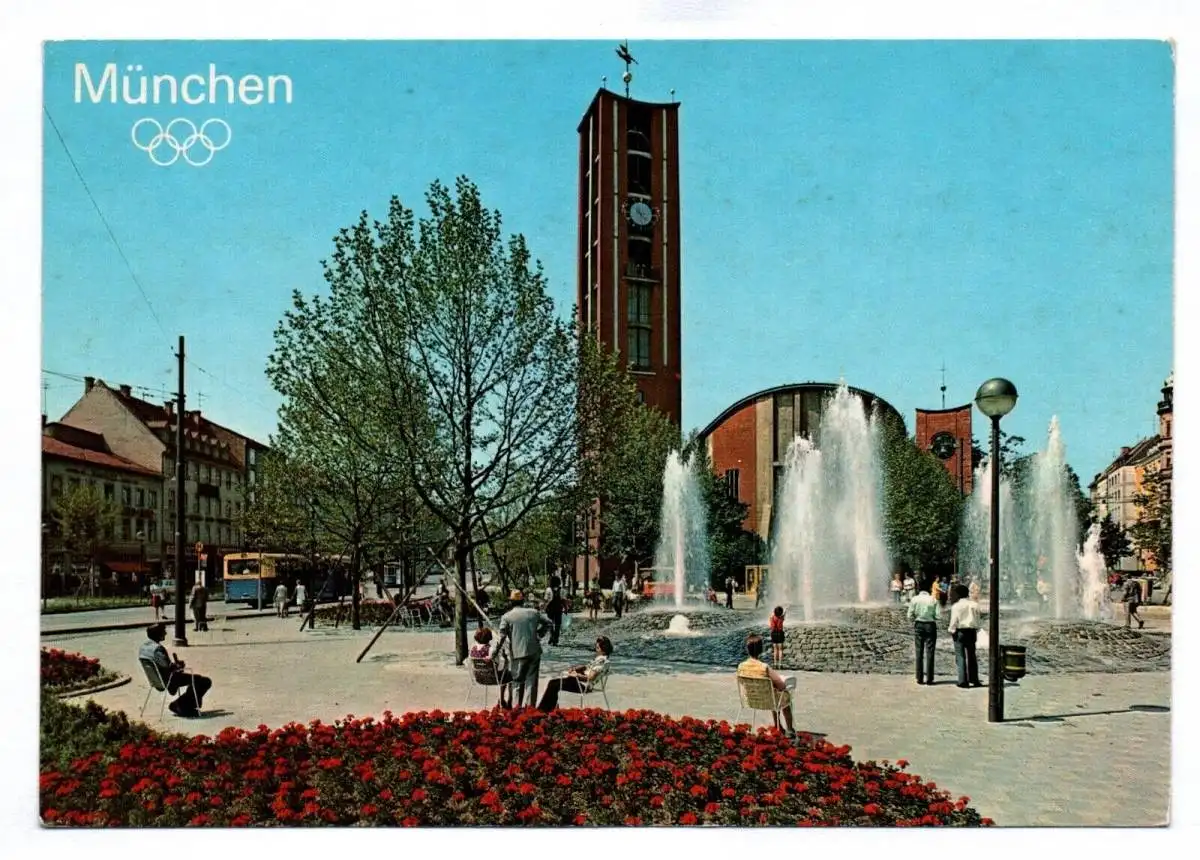 Foto Ak München Olympia Platz mit Matthäuskirche