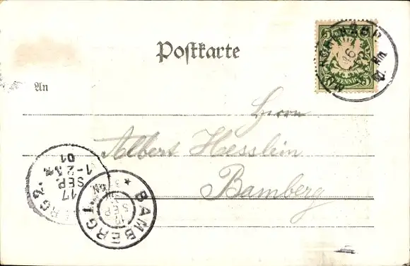 Zustand, siehe Scan, gelaufen, 1901 - ca 14 cm X 9 cm
