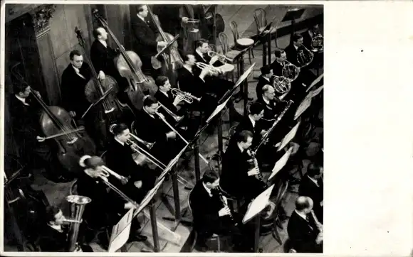 Foto Ak Musiker auf einer Bühne, Orchester, Musikinstrumente
