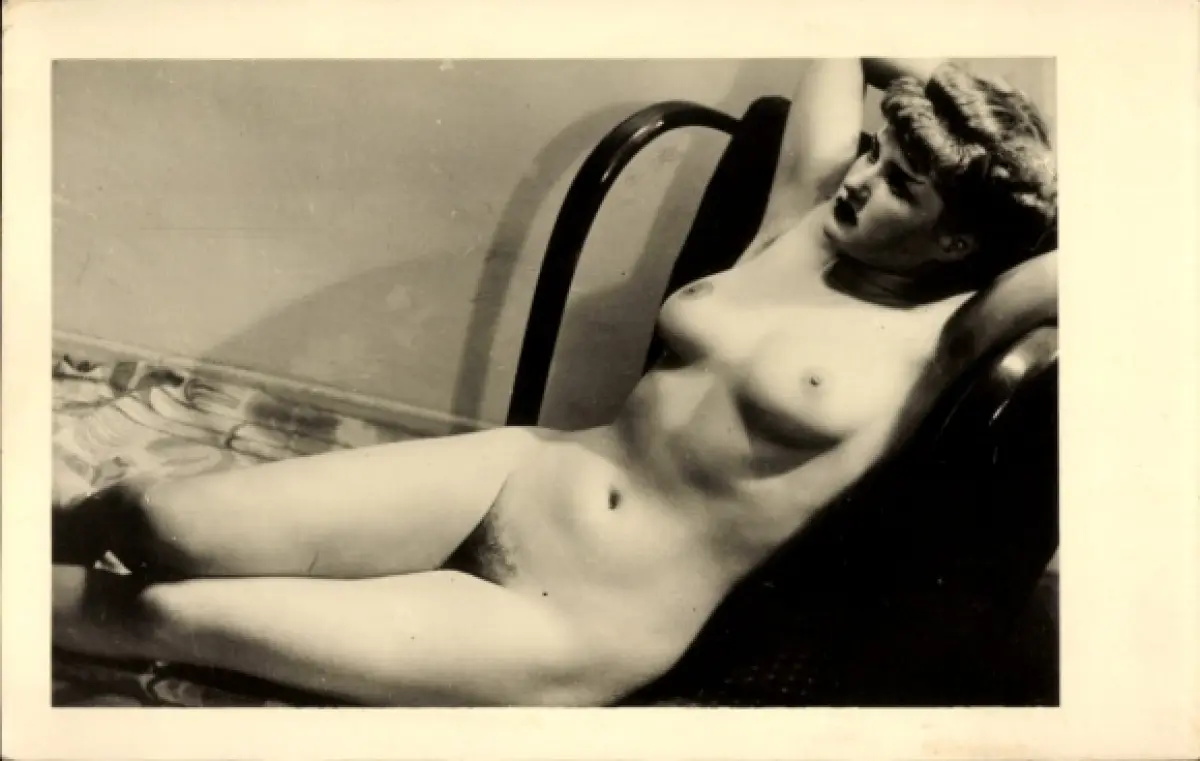 Foto Ak Nackte Frau liegend, Erotik, Beine, Busen