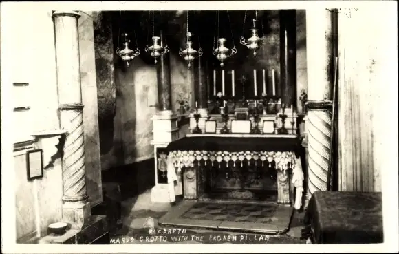 Foto Ak Nazaret Nazareth Israel, Marys Grotto with the broken pillar