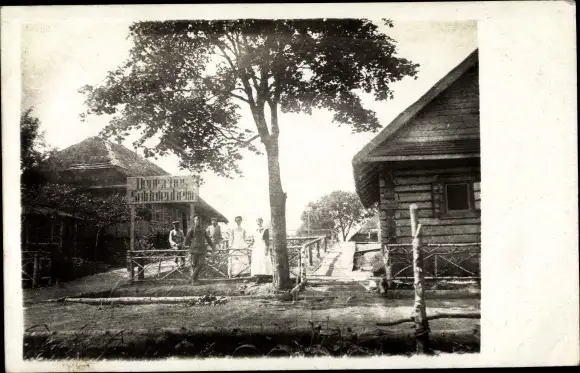 Foto Ak Östlicher Kriegsschauplatz, Deutsche Soldaten in Uniformen, Holzhäuser, I WK
