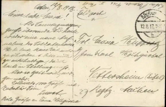 Zustand, siehe Scan, gelaufen, 1917 - ca 14 cm X 9 cm