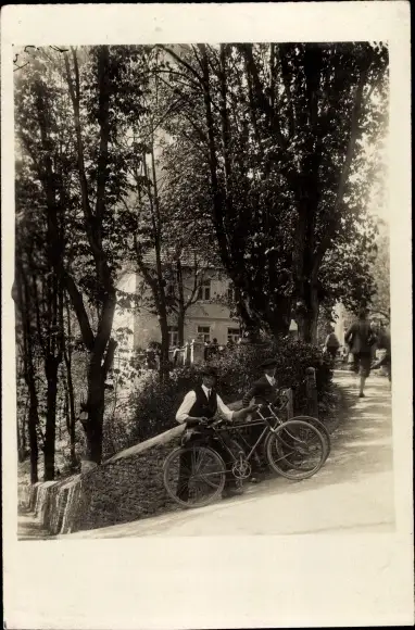 Foto Ak Ortsansicht, Straße, Radfahrer, Fahrräder