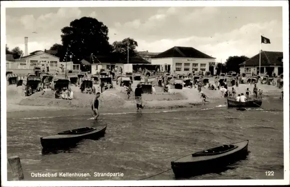 Foto Ak Ostseebad Kellenhusen in Holstein, Strandpartie, Boote, Strandkorb, Badende