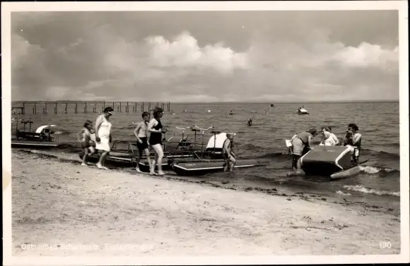 Foto Ak Ostseebad Scharbeutz in Ostholstein, Partie am Strand, Ferienfreuden, Tretboote