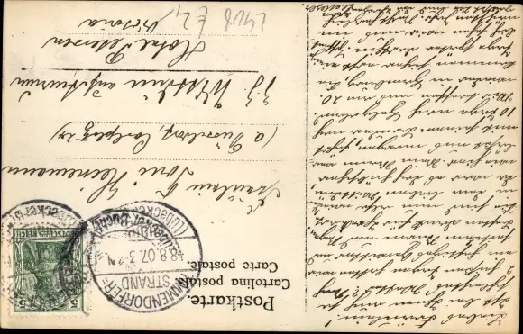 Zustand, siehe Scan, gelaufen, 1907 - ca 9 cm X 14 cm