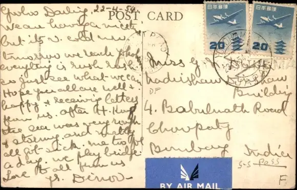 Zustand, siehe Scan, gelaufen, 1954 - ca 14 cm X 9 cm